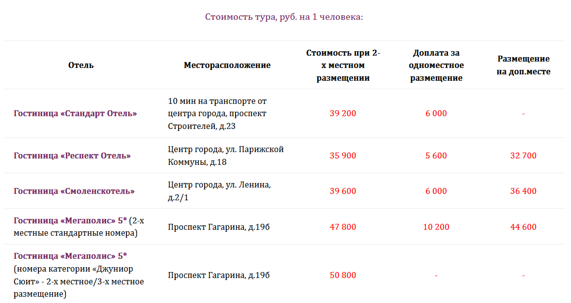 19:00 — 19:30 Прибытие в Смоленск. Размещение в гостинице. Свободное время.